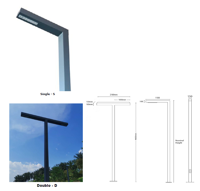 The lantern and pole made rectangular extruded aluminium